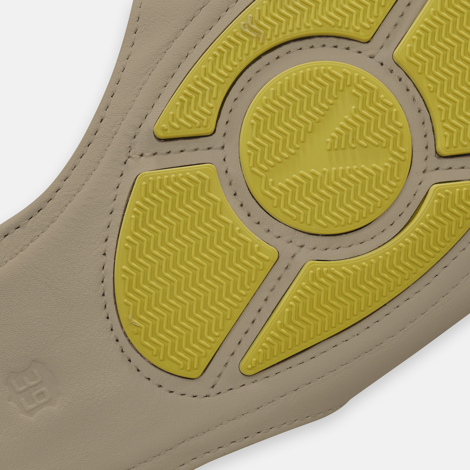Koža je prirodno tretirana, bez štetnih hemikalija, koja s vremenom poprima oblik tvog stopala. Poseban pečat daje đon u nijansi kari žute – boja odabrana da se diskretno i sofisticirano uklapa uz širok spektar tonova i stilova.